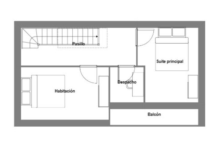 Accediendo a la segunda planta, descubrirás dos amplios dormitorios. También hay un acogedor espacio que puede ser destinado a un despacho, zona de almacenaje o incluso un rincón de lectura.